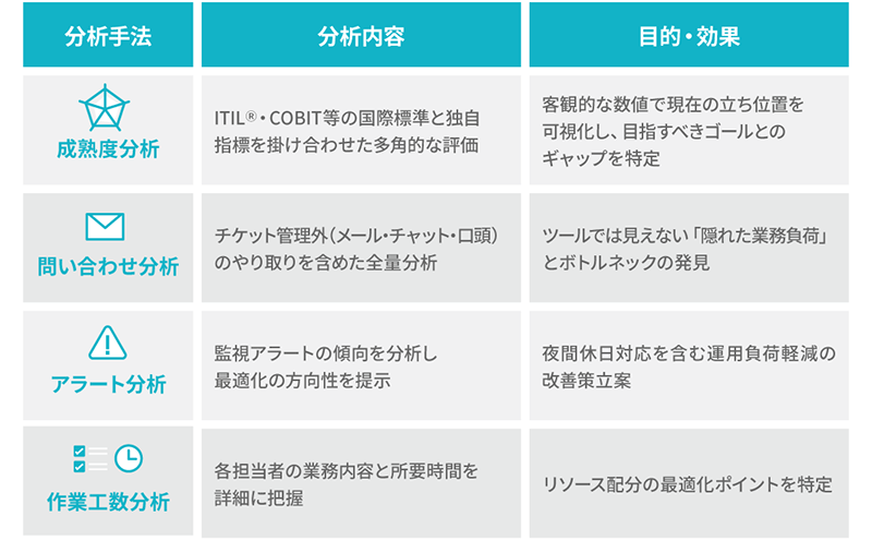 運用アセスメントにおける主な分析手法