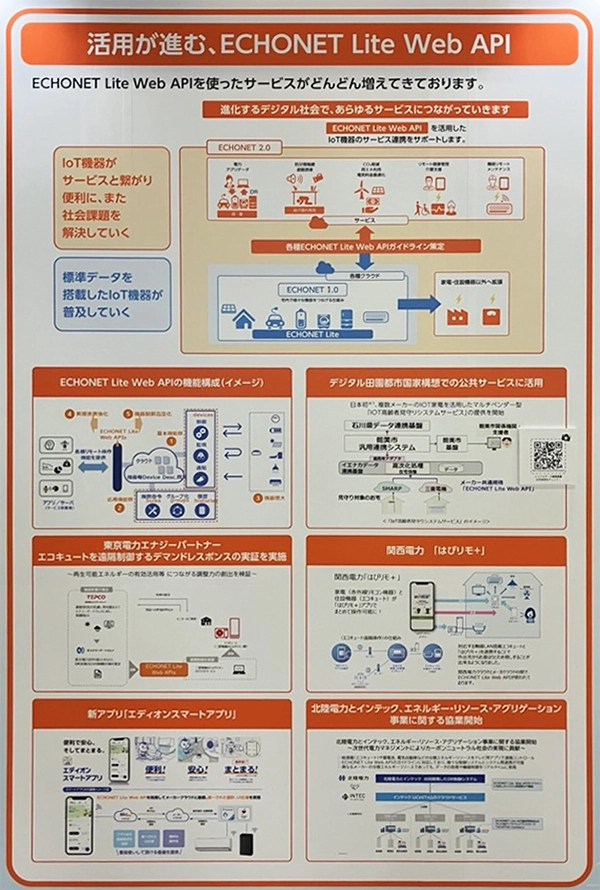 この中の暮らしのDXパビリオン内で、インテックが開発するUCHITASクラウドHEMSサービスと北陸電力との協業による「エネルギーリソースアグリゲーション」の取り組みが、ECHONET Lite※のWeb API活用事例として紹介されました。